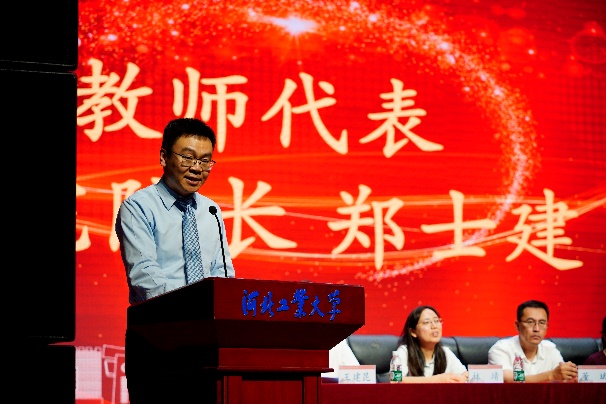 最后,学院院长郑士建以教师代表的身份进行总结发言。他首先向毕业生们送上祝贺,深情回顾了同学们在校期间的拼搏历程与成长收获,盛赞他们洋溢的青春朝气,激励大家坚定人生信仰、勇担时代责任,同时也寄托了对毕业生们的深切期望与美好祝福。