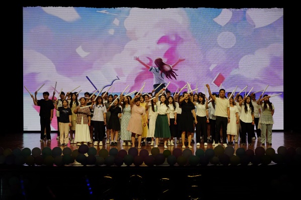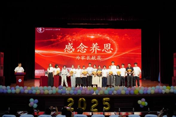 晚会最后,全体家长代表、演职人员及学院教师共同上台,为毕业生送上最真挚的祝福。