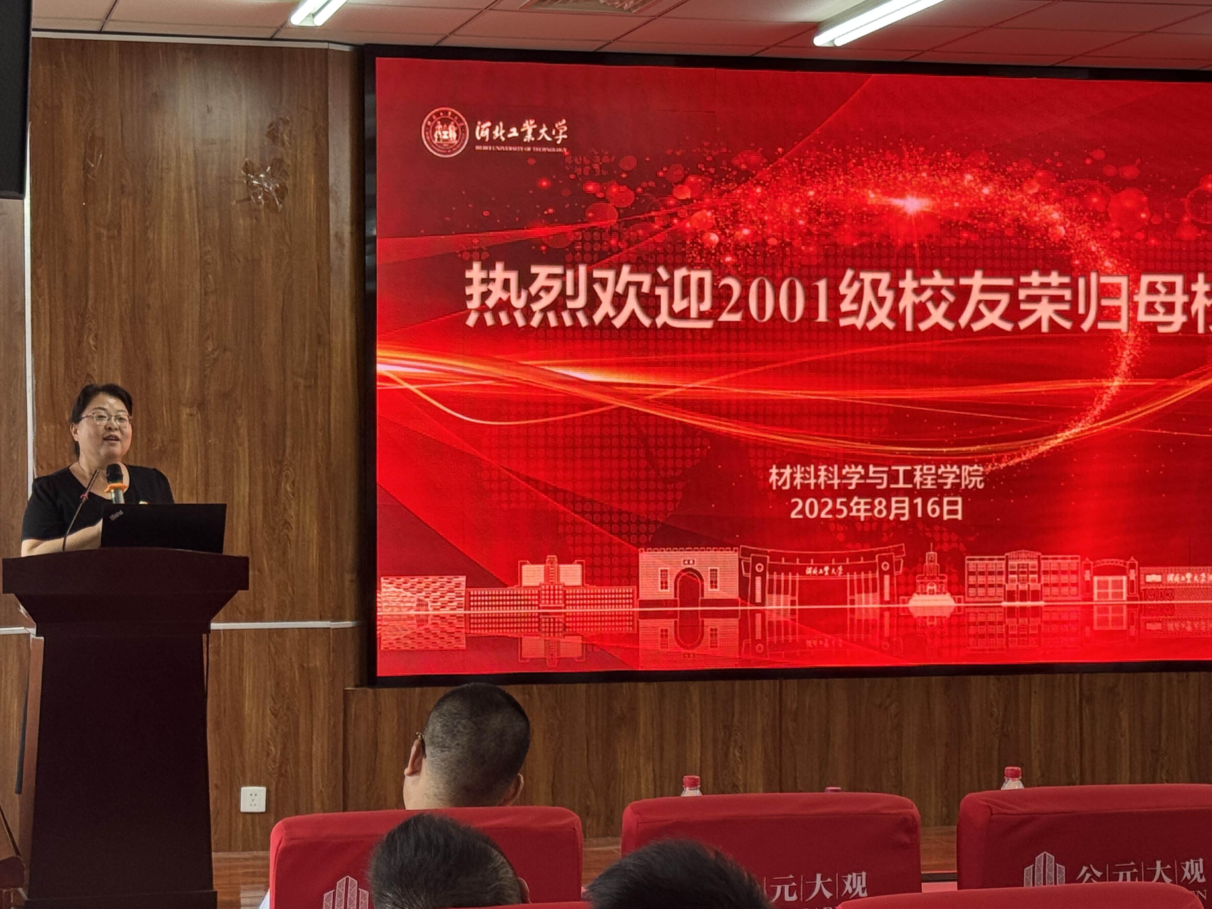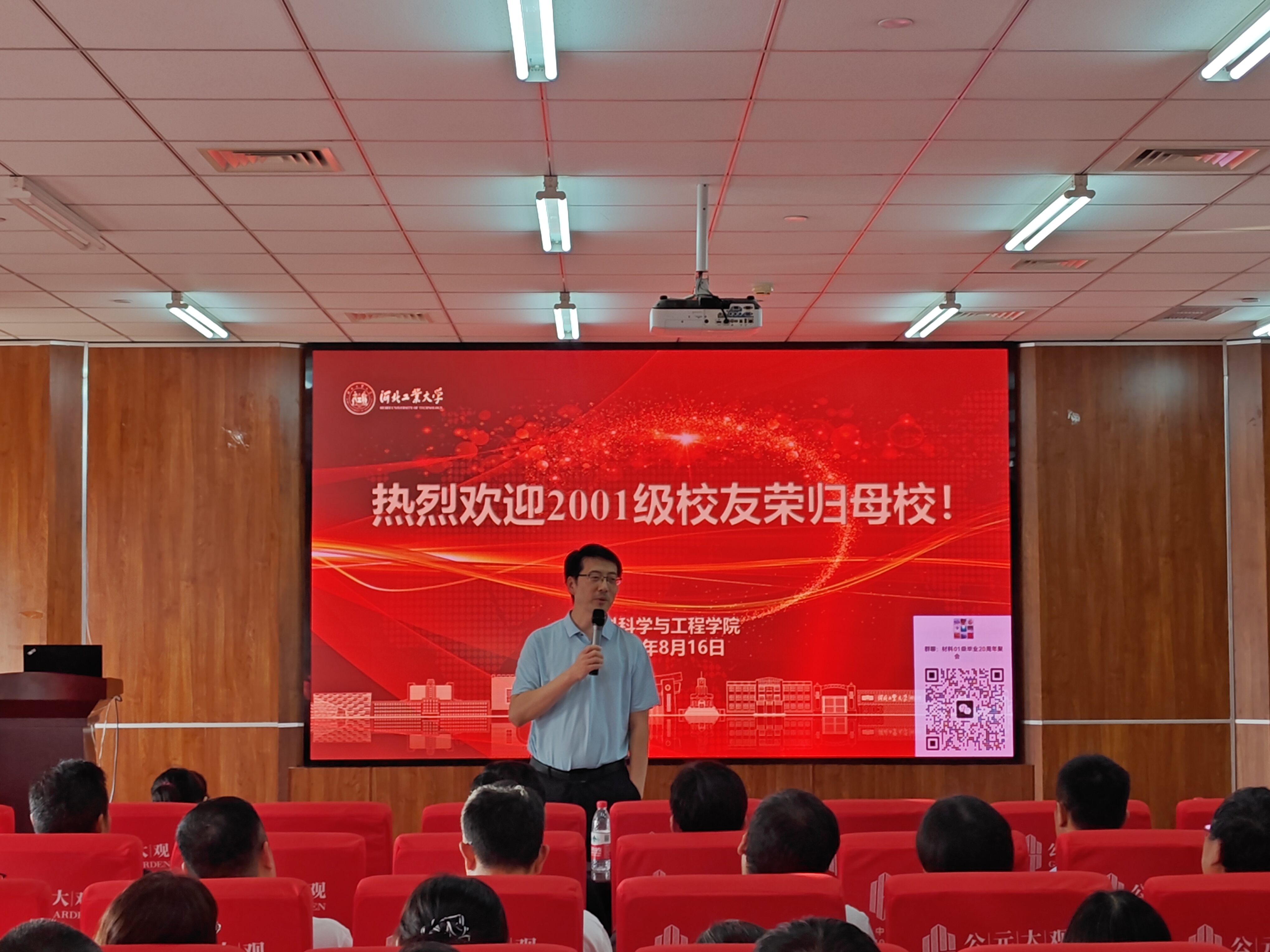8月16日,材料学院2001级60余名校友从各地重返母校,共庆毕业二十周年。学院正处级辅导员张雪莹、校人事处副处长王志坤(曾任2001级学生辅导员)、学院副院长夏兴川(同为材料012班校友)出席了本次盛会。